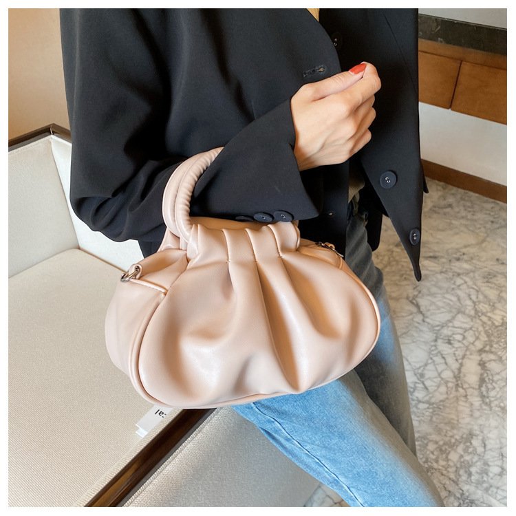 Versatile Womens Retro Cloud-Print Pleated Shoulder Crossbody Bag